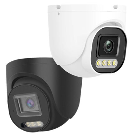 5MP AI metal turret camera with full-color night vision, humanoid-triggered LEDs, and IP67 protection.